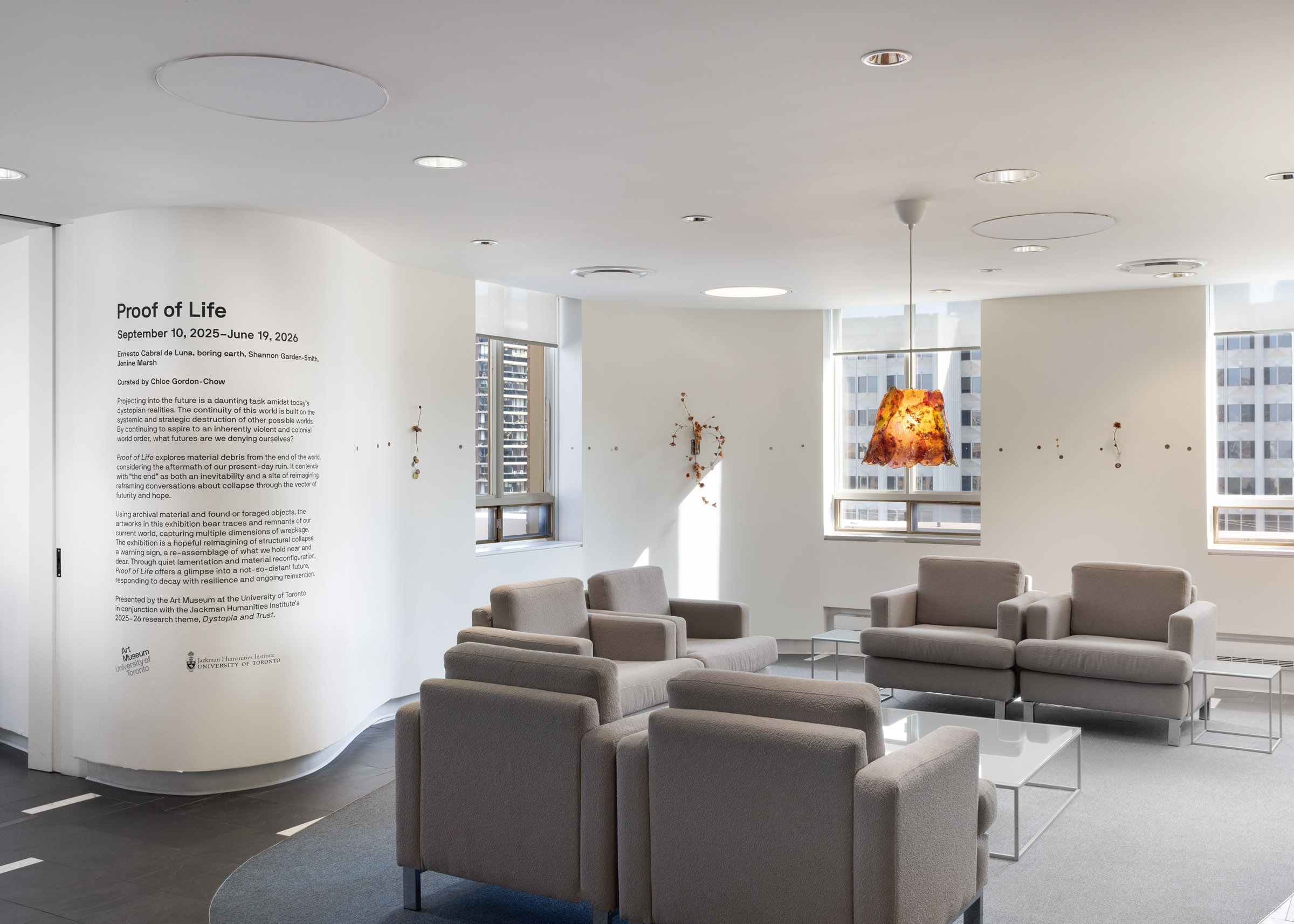 Inhabiting dystopia, Proof of Life explores material debris from the end of the world, considering the aftermath of our present-day ruin. Using archival matter and found or foraged objects, the artworks in the exhibition bear traces and remnants of the present, speaking to a not-so-distant future. Featuring sculpture, installation, photography, and participatory art, the exhibition captures multiple dimensions of and attitudes towards wreckage. It asks, what does it mean to imagine an “after”? In answer, four artists speculate, play, and explore alternate possibilities for worlding amidst decay. Exhibiting works by Ernesto Cabral de Luna, boring earth, Shannon Garden-Smith, and Jenine Marsh, Proof of Life contends with “the end” as both an inevitability and a site of reconfiguration and becoming.